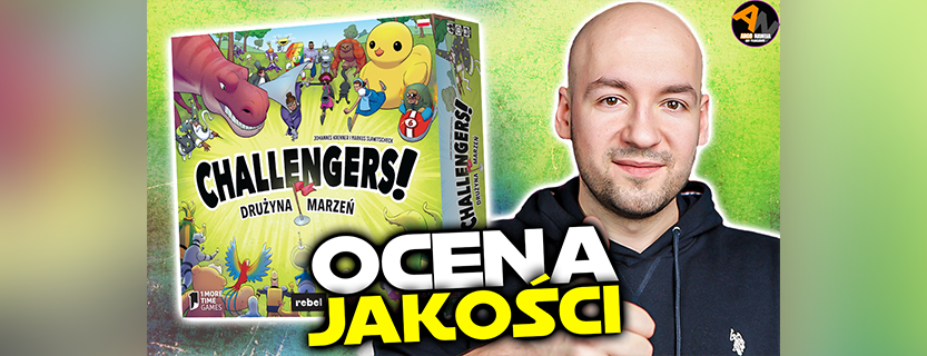 „Challengers! Drużyna Marzeń” od Rebel to karcianka z mechaniką budowania talii. Pstrokate pudło, w którym mamy ponad 330 kart. Jednak jeden typ komponentu zrobił na mnie bardzo dobre wrażenie. Zobaczcie jak w nowej skali oceniam jakość wykonania 🙂