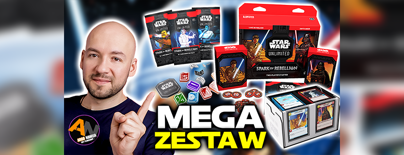 Na filmie zajrzę do zestawu startowego dla dwóch graczy, gdzie wcielimy się w Luka Skywalkera oraz Darth Vadera. Do tego dużo gadżetów – Double Deck Pod, czyli oficjalnie licencjonowane, pełne bajerów pudełko na dwie talie. Dwie paczki koszulek „full artowych” oraz akrylowe żetony premium.
